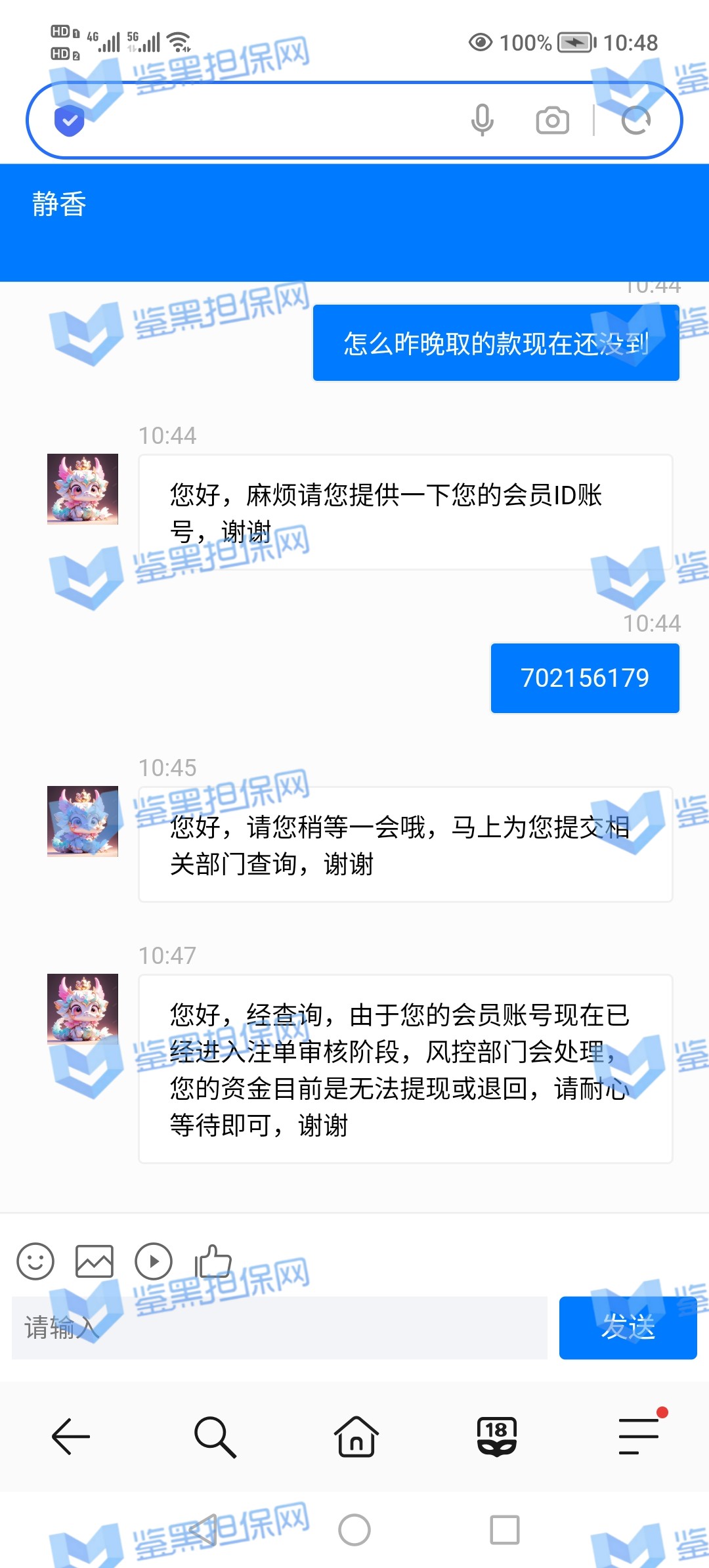 4.用户提交维权需为本人提交,若代替让人发布维权鉴黑担保网将拒绝受理;