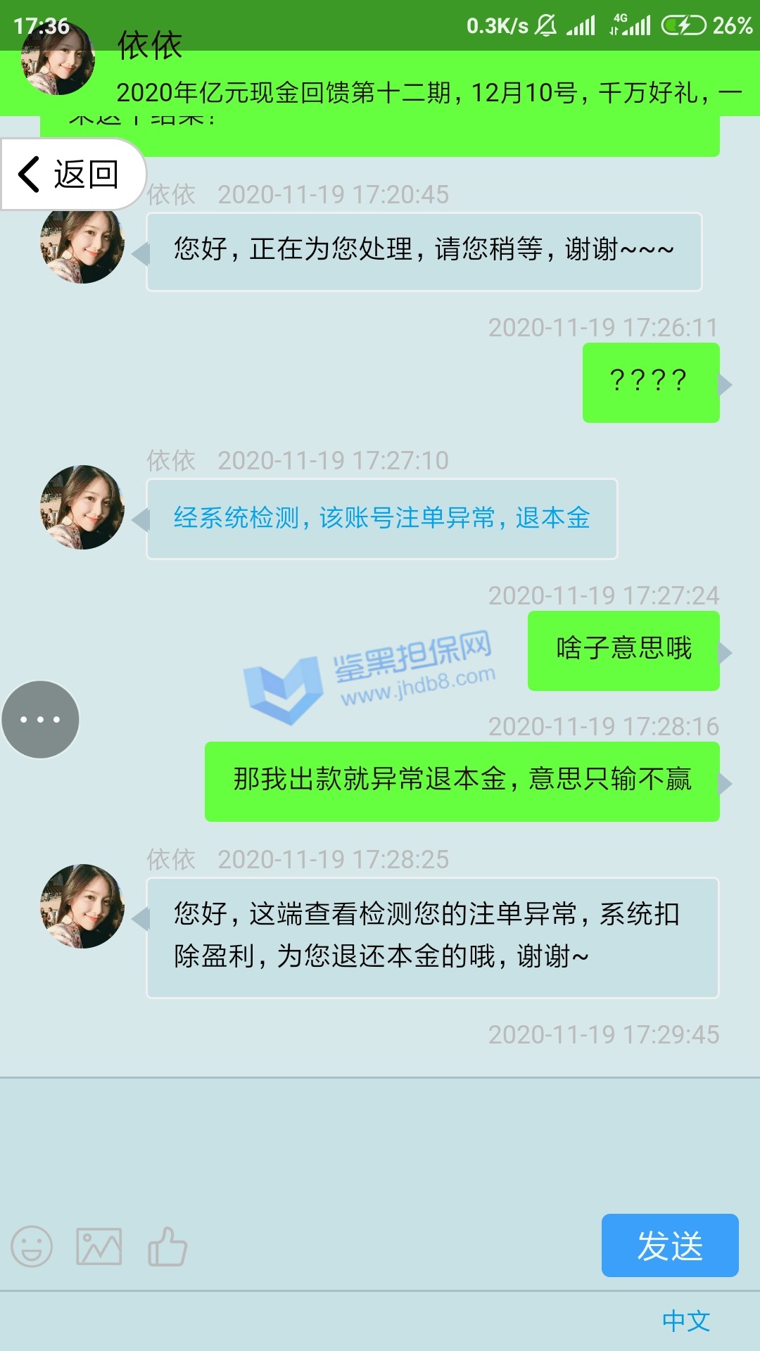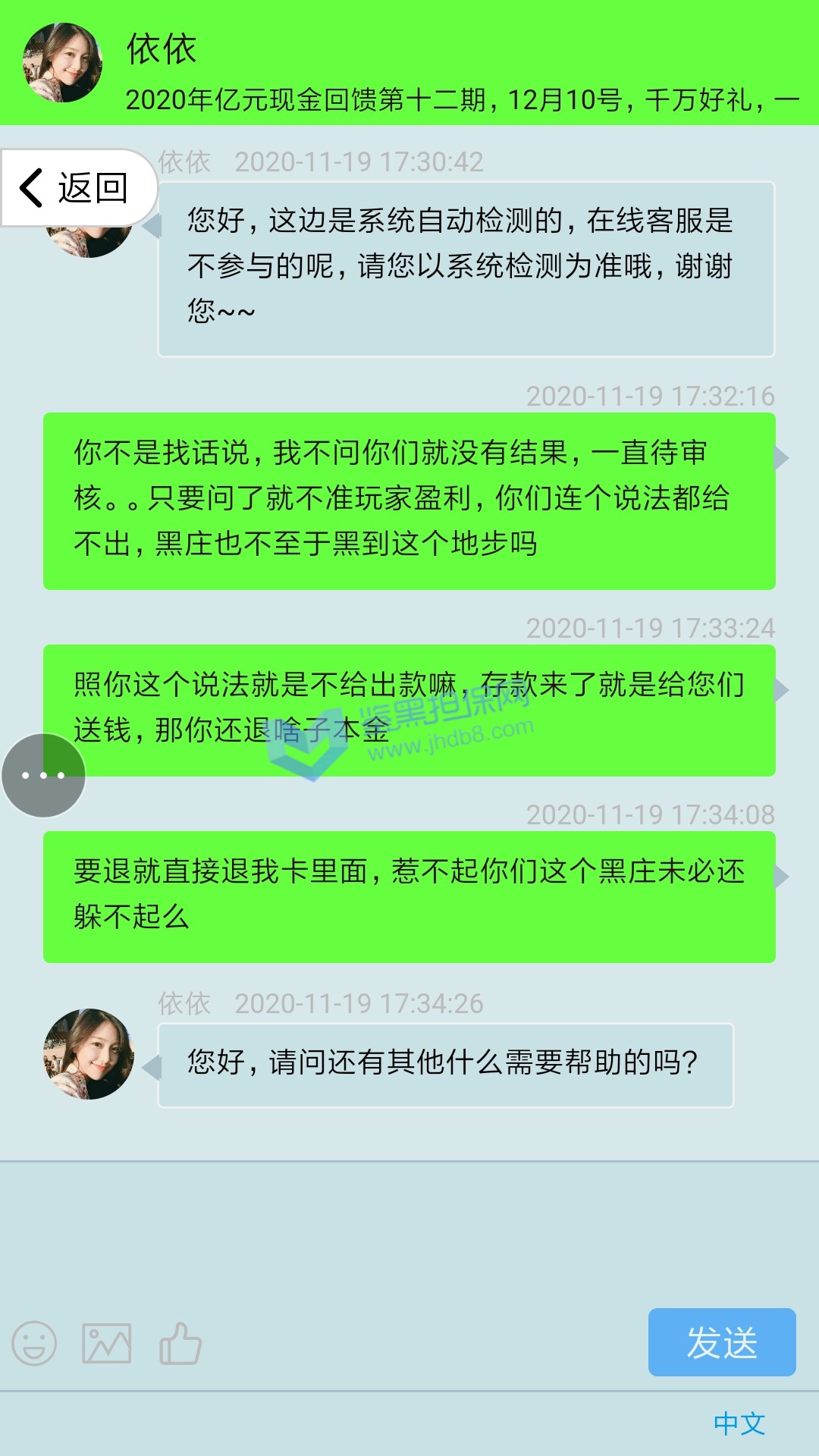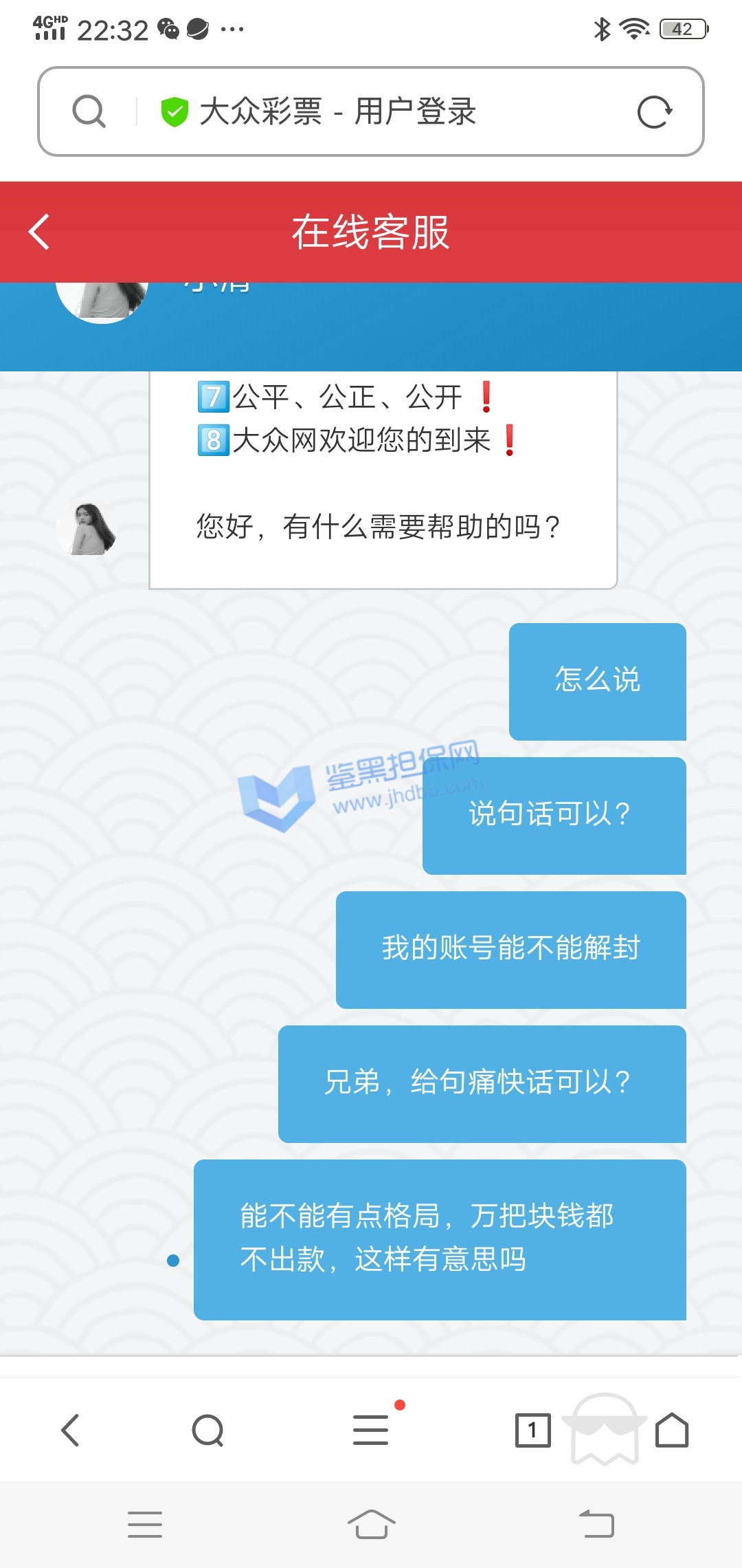 4.用户提交维权需为本人提交,若代替让人发布维权鉴黑担保网将拒绝受理;