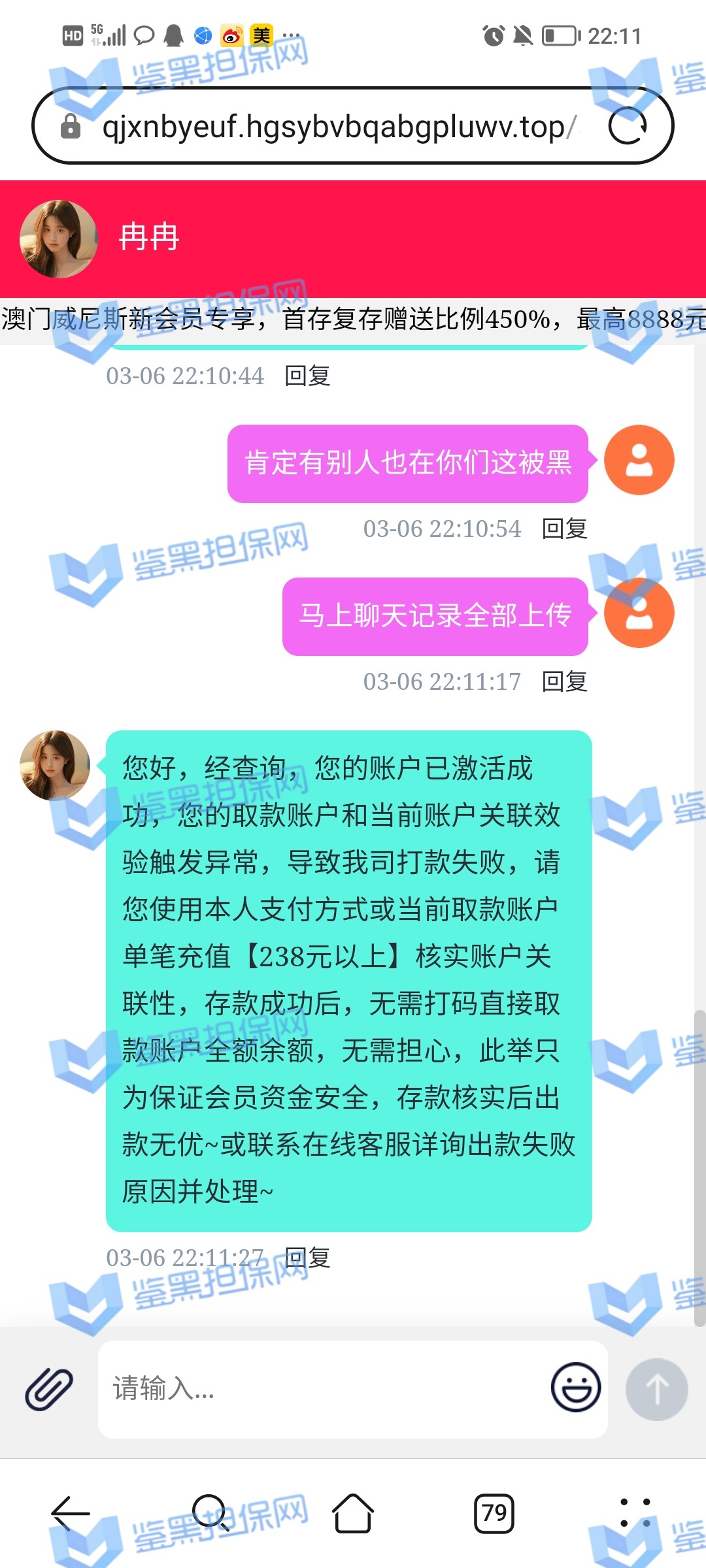 4.用户提交维权需为本人提交,若代替让人发布维权鉴黑担保网将拒绝受理;